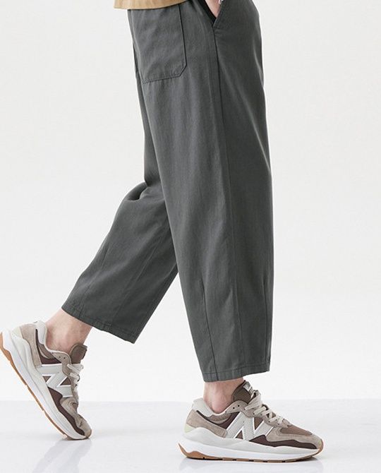 九分丈の裾がすっきりとした印象を与え、足元を軽やかに演出します。
