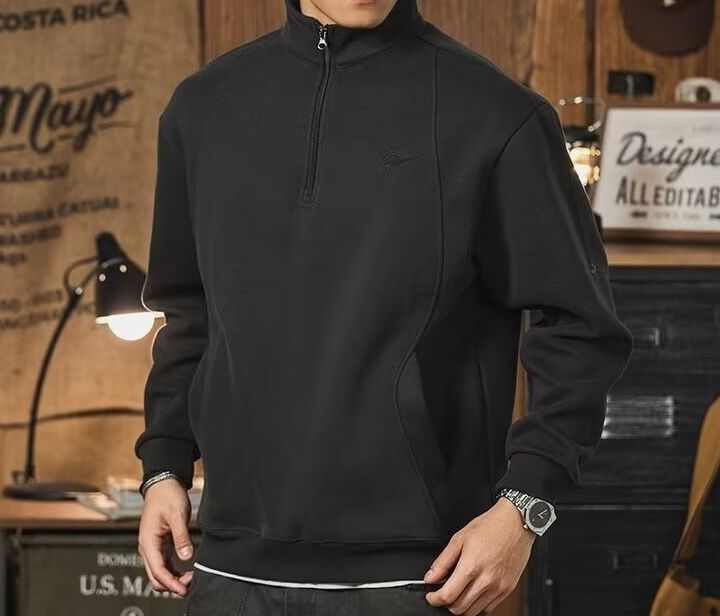 ハーフジップ仕様で着脱しやすく、首元の温度調節も簡単です。