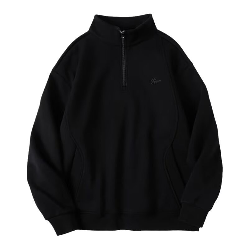 シンプルなデザインに胸元のワンポイント刺繍がアクセントになったスウェットメンズのハーフジップです。